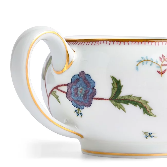 Tento originální vzor anglické designérky Kit Kemp s orientálním nádechem vychází z kolekce vyšívaných látek od Chelsea Textiles. Kit Kemp je známá jako spolumajitelka a designová ředitelka hotelů Firmdale, která je známá svými eklektickými a barevnými návrhy. Kit je často ovlivněn smyslem pro rozmarné a lyrické, stejně jako její láska ke zvířatům. Tato kolekce obsahuje velké i malé stvoření, které nese pouze její představivost. Ilustrativní styl řady je aplikován na hedvábně bílém kostním porcelánu a zdobený zlatou aplikací.