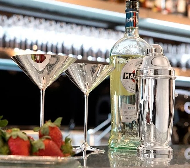 Elegantní postříbřený pohár na Martini nebo koktejl z stříbrného kovu s obráceným kónickým tvarem zakončená stopkou, která spočívá na ploché základně. Pohár slouží k podávání koktejlu při teplotě nula stupňů, stopka umožňuje držení "misky" bez ovlivnění teploty nápoje. Pohár, který ohromí a díky němuž je okamžik nápoje skutečný luxus. Moderní design a zpracování, které značku Greggio charakterizuje již od roku 1948, jsou Made in Italy a použité materiály jsou absolutní kvality. Dodáváno v elegantní modré krabičce se záručním listem.