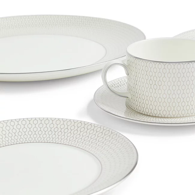 Najděte perfektní kombinaci s kolekcí Gio Platinum. Tento krásný výběr stolního a čajového nádobí, které je vyrobeno z jemného kostního porcelánu, bez námahy pozvedne váš stůl. Moderní kovový vzor, který se dokonale vrství do stávajících barev Gio White a Gio Gold, tyto luxusní kousky dodávají elegantní jednoduchost každé příležitosti.