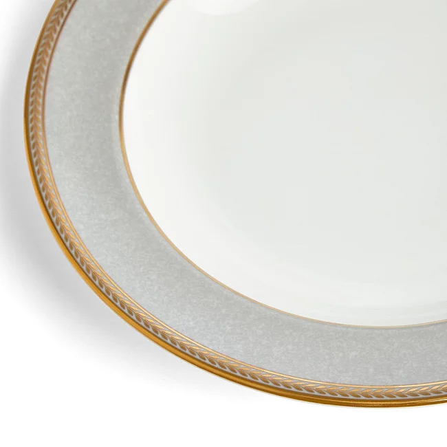 Tento sofistikovaný talíř 23 cm je samozřejmě na polévku, ale skvěle poslouží na pastu nebo i snídani. Talíř je vyroben z kostního porcelánu Wedgwood a ozdoben krásným vzorem Renaissance Grey z 22 karátového zlata. Lze kombinovat s Renaissance Gold a Red.