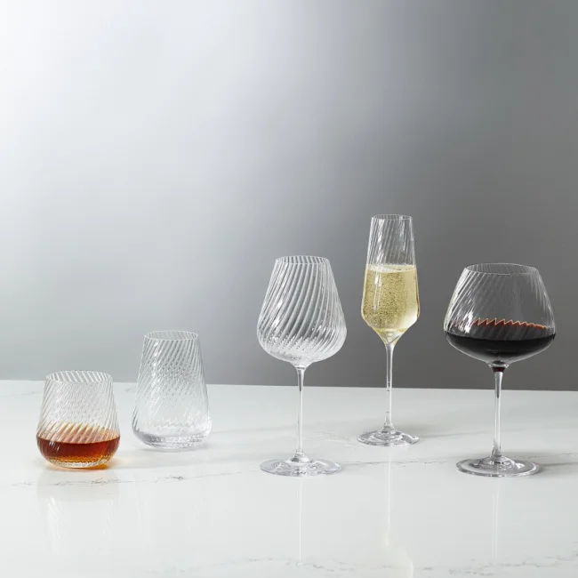Vera Wang je synonymem elegance, luxusu a stylu. Kolekce křišťálového skla Swirl je inspirováno jednoduchou krásou jejího charakteristického stylu složitého vrstvení látky, často kroucené, aby kolem formy vytvořily nádherné detaily. Jedinečná schopnost Very Wang propojit její moderní designový cit s nadčasovými prvky dělá z jejích návrhů sofistikovaný doplněk domova.