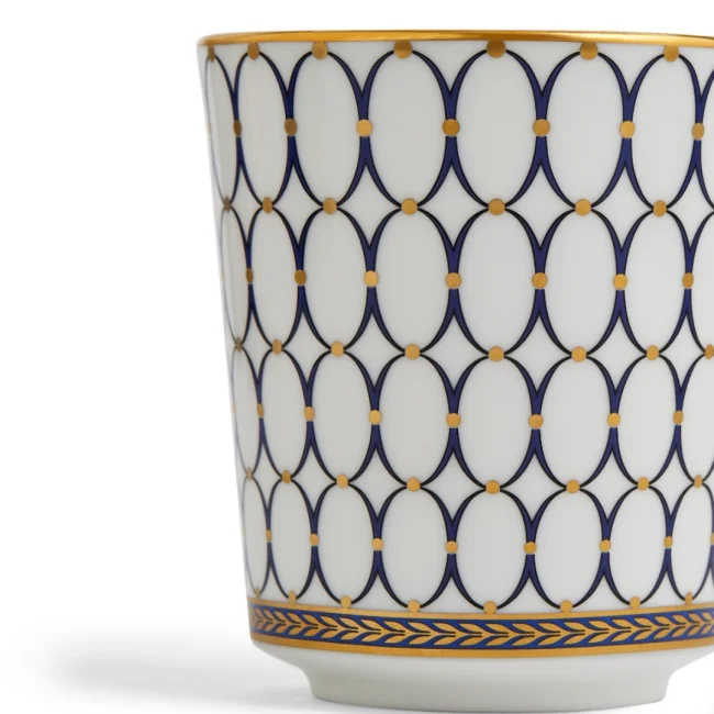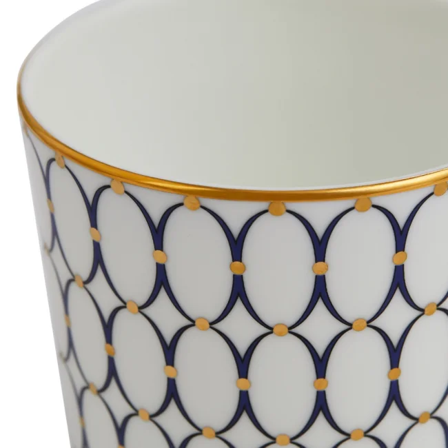 Wedgwood čerpal ze svého rozsáhlého archivu, aby vytvořil tuto nádhernou kolekci Renaissance Gold. Tato shovívavá kolekce je ponořená do autenticity při zachování moderního klasického stylu. Kombinací elegantních motivů interiérového designu s čistým oválným tvarem slavného portrétu Wedgwood, spolu s bohatou námořnickou modří, zlatými detaily a výraznými florentskými akcenty je tento výrazný, elegantní vzor zachycen v tomto elegantním hrnku vyrobeném z jemného kostního porcelánu pro vynikající pevnost a bezkonkurenční průsvitnost.
