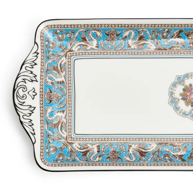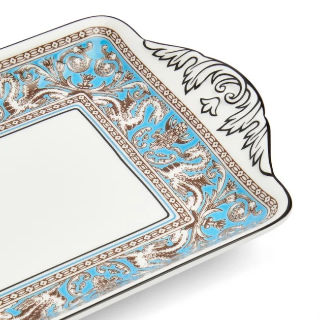 Objevte zemi, kde se potulují bájní tvorové a kvete fantastická flóra, zemi ležící někde mezi časem večeře a odpoledním čajem. Díky bohatství jemně ručně vykreslených motivů postavených proti jasnosti hedvábně bílého jemného kostního porcelánu je florentská tyrkysová kolekce zalitá ve fantazii, kde řvoucí griffiny s orlí hlavou a lvíčkem sledují řev a kořeny přesahují vaši nejdivočejší představivost.