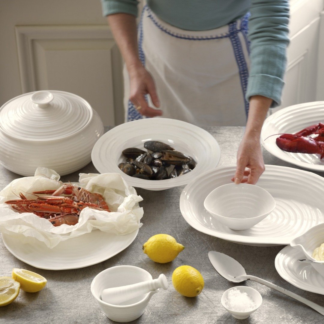Nadčasová kolekce porcelánu Sophie Conran for Portmeirion je dokonale navržena a promyšleně vyrobena. Každý kus přináší radost do každodenních chvil u stolu. S nepřilnavou glazurou, která se snadno čistí, můžete každý kousek po použití vložit do myčky na nádobí nebo ohřát v mikrovlnné troubě. Této moderní kolekce se vyznačuje okamžitě rozpoznatelným vlněním, které z této kolekce dělá skutečnou portmeirionskou klasiku.