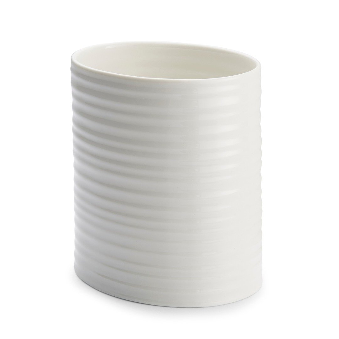 Od vařeček po naběračky, vše má své místo v této hezké oválné nádobě na doplňky z kolekce porcelánu Sophie Conran. Vlnitý vzor mu dodává domácí pocit, zatímco široká oválná horní část poskytuje prostor pro spoustu náčiní. Proč nezačít být kreativní a nepoužít dózu k uchování jiných kousků ve vaší kuchyni?