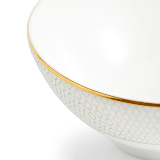 Milujete trochu luxusu v každodenním životě? Pokud ano, tak tato miska z kolekce Gio Gold poskytuje základ Vašeho stolování. Zlatý geometrický vzor na bílém kostním porcelánu je odvážným a současným akcentem na každém stole. To vše s elegantním zlaceným lemováním kolem okrajů, které dodá každému jídlu opulentnost.