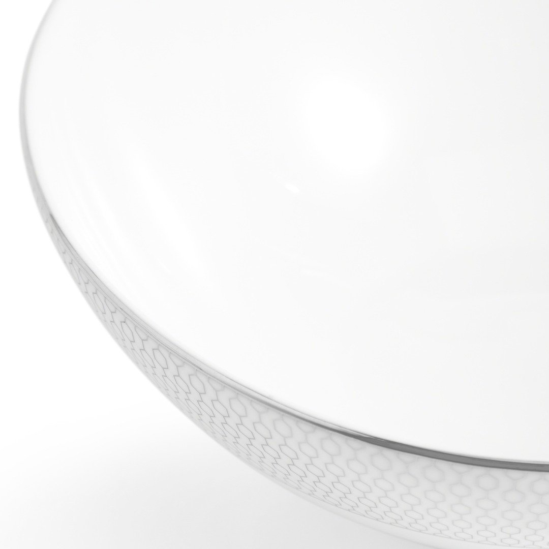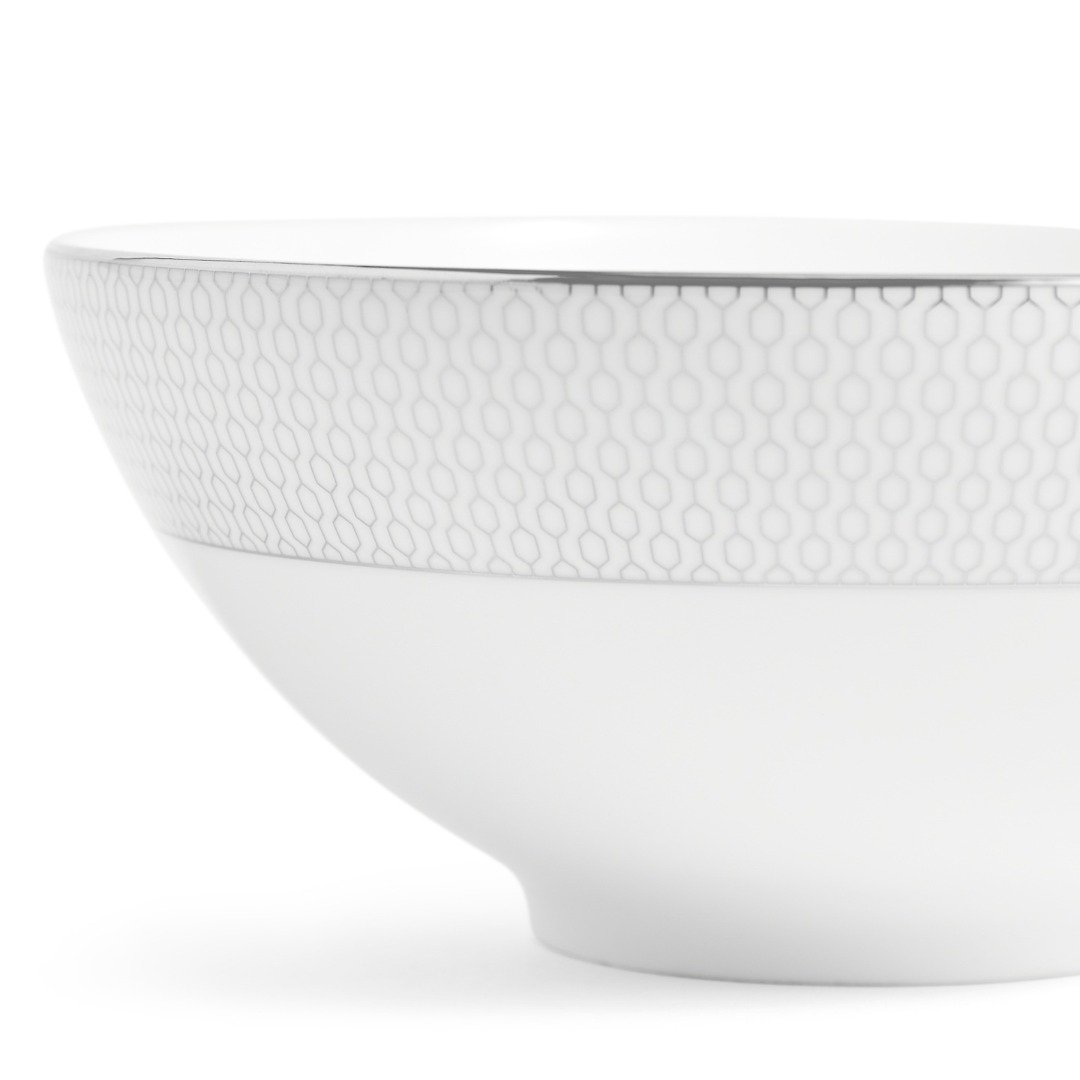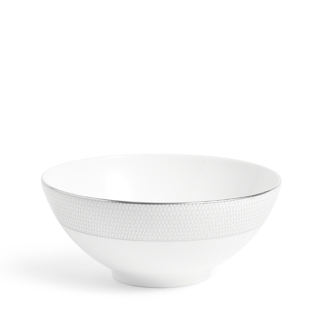 Milujete trochu luxusu v každodenním životě? Pokud ano, tak tato miska z kolekce Gio Platinum poskytuje základ Vašeho stolování. Platinový geometrický vzor na bílém kostním porcelánu je odvážným a současným akcentem na každém stole. To vše s elegantním platinovým lemováním kolem okrajů, které dodá každému jídlu opulentnost.