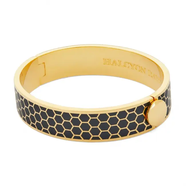 Oválný náramek Black Gold Honeycomb je dokonalou směsí moderního stylu a nadčasové elegance. Tento úžasný náramek se vyznačuje pečlivě vytvořeným vzorem na černém smaltovaném základu pro elegantní, leštěný povrch.