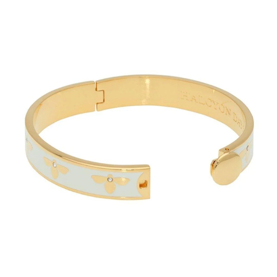 Tento ručně vyrobený smetanově-zlatý náramek z kolekce Bee je perfektní klenot pro každou ženu. Odklápěcí část zajišťuje snadné a pohodlné nošení, takže je ideálním doplňkem pro každou příležitost. Ať už se nosí samostatně nebo v kombinaci, tento náramek dodá každému outfitu sofistikovaný nádech. Skutečný kus, který ztělesňuje umění a řemeslo, které definují tuto kolekci.