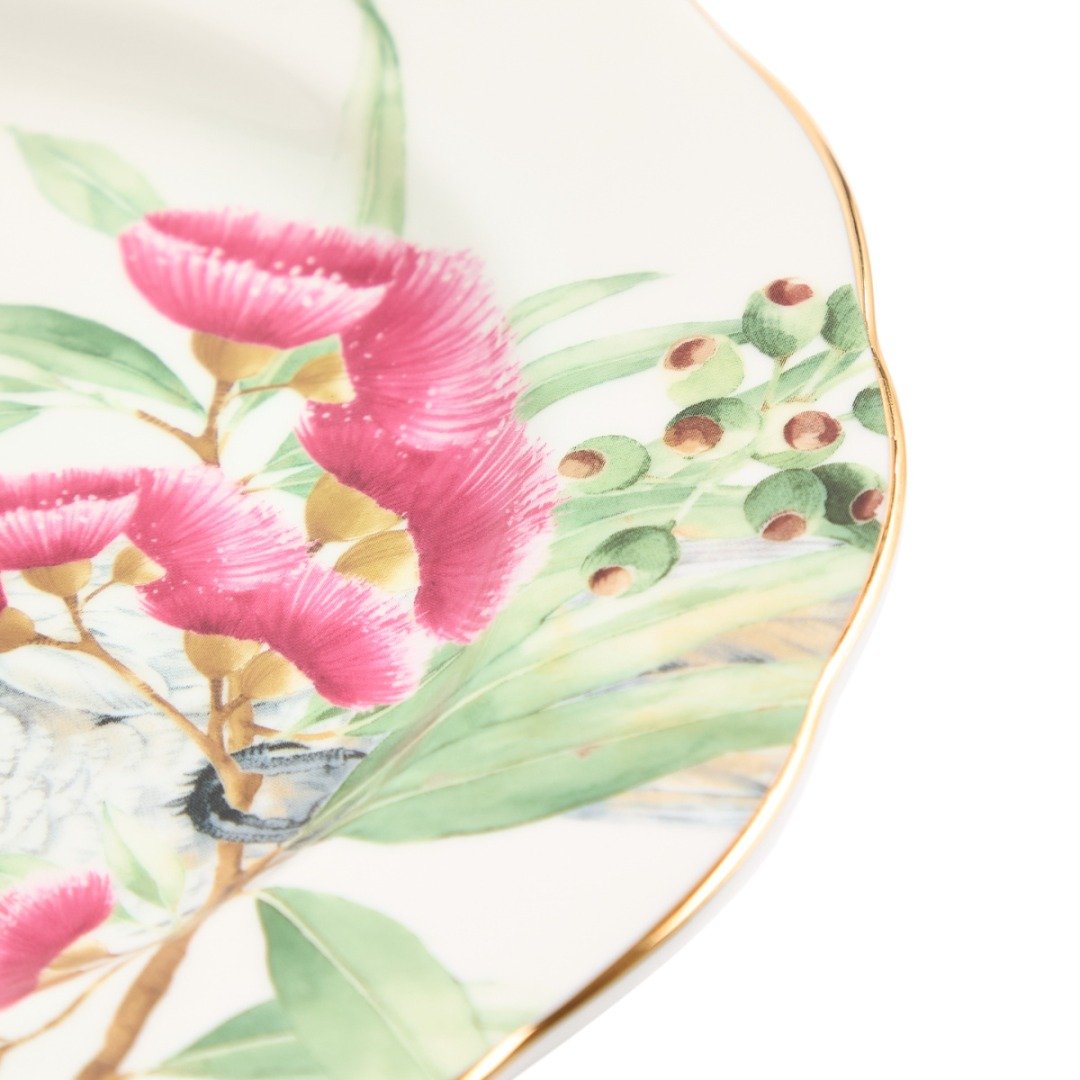 Vneste na svůj stůl trochu radosti a kreativity s tímto krásným talířem z kolekce Australiana od Mirandy Kerr. Teto jemný kus kostního porcelánu odráží motiv Austalie prostřednictvím znázornění rostlin a zvířat. Dodejte svému stolu trochu romantiky a zábavy s kolekcí Australiana.