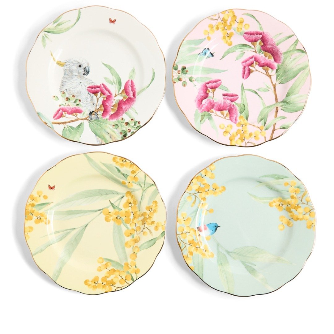 Miranda Kerr strávila dětství šplháním po stromě poblíž domu své babičky a kochala se přírodní krásou okolí, než se vydala do domu na čaj a dort. Právě tam v korunách stromu, se zrodila tato nová kolekce porcelánu. Australiana je bujarou oslavou Mirandiny lásky ke krásnému prostředí její rodné Austrálie a nabízí dostupný luxus prostřednictvím nadčasového a všestranného designu. Vzor pochází z Mirandiny fantazie, překypuje barvami a hravými motivy, které zobrazují eukalyptus společně s peřím místních ptáků, jako jsou kakaduové a střízlíci modří. Tato kolekce jemného kostního porcelánu se zlatou linkou je ideální pro odpolední čaj, ale i snídani nebo zahradní oběd.