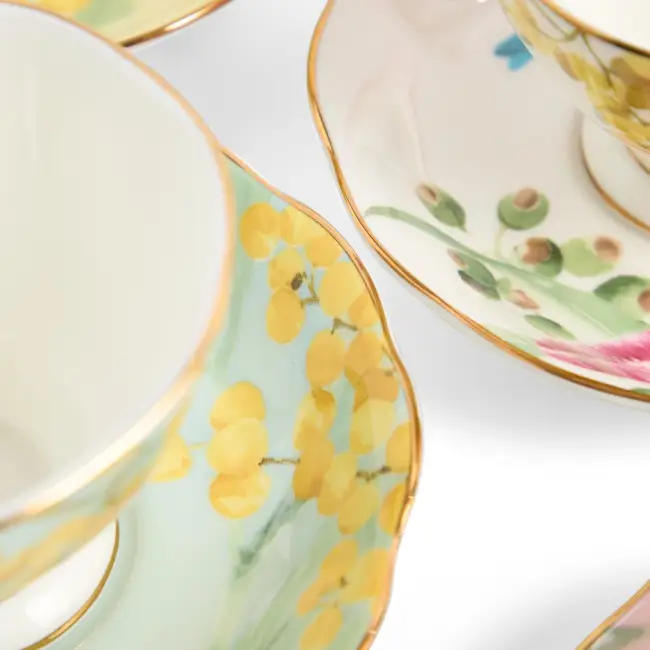 Miranda Kerr strávila dětství šplháním po stromě poblíž domu své babičky a kochala se přírodní krásou okolí, než se vydala do domu na čaj a dort. Právě tam v korunách stromu, se zrodila tato nová kolekce porcelánu. Australiana je bujarou oslavou Mirandiny lásky ke krásnému prostředí její rodné Austrálie a nabízí dostupný luxus prostřednictvím nadčasového a všestranného designu. Vzor pochází z Mirandiny fantazie, překypuje barvami a hravými motivy, které zobrazují eukalyptus společně s peřím místních ptáků, jako jsou kakaduové a střízlíci modří. Tato kolekce jemného kostního porcelánu se zlatou linkou je ideální pro odpolední čaj, ale i snídani nebo zahradní oběd.