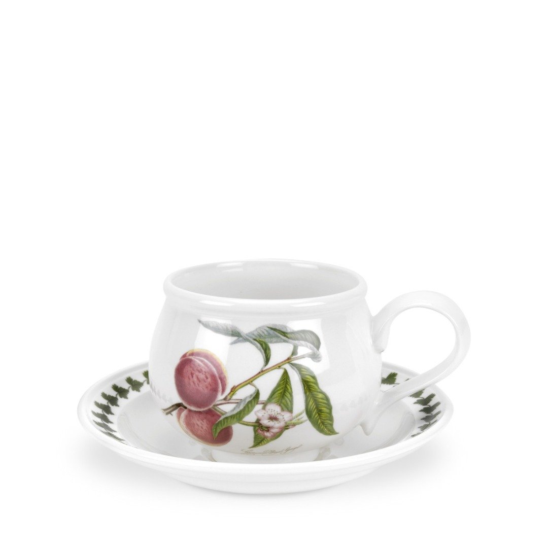 Šálek a podšálek Pomona se vyznačuje úžasnou ilustrací broskve a podšálek je zdoben klasickým listovým lemem kolekce. Tento šálek a podšálek jsou ideální pro vychutnání si relaxačního šálku čaje nebo pro rozšíření vaší stávající kolekce nebo doplnění kolekce Botanic Garden. Romanticky tvarovaný šálek a podšálek Pomona jsou k dispozici v různých ovocných motivech, které vám umožní vytvořit si vlastní jedinečnou sadu.