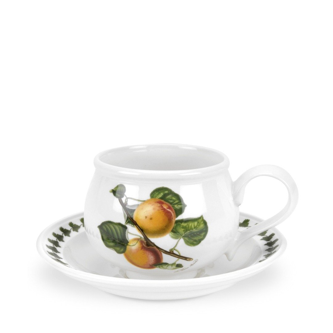 Šálek a podšálek Pomona se vyznačuje úžasnou ilustrací meruněk a podšálek je zdoben klasickým listovým lemem kolekce. Tento šálek a podšálek jsou ideální pro vychutnání si relaxačního šálku čaje nebo pro rozšíření vaší stávající kolekce nebo doplnění kolekce Botanic Garden. Romanticky tvarovaný šálek a podšálek Pomona jsou k dispozici v různých ovocných motivech, které vám umožní vytvořit si vlastní jedinečnou sadu.