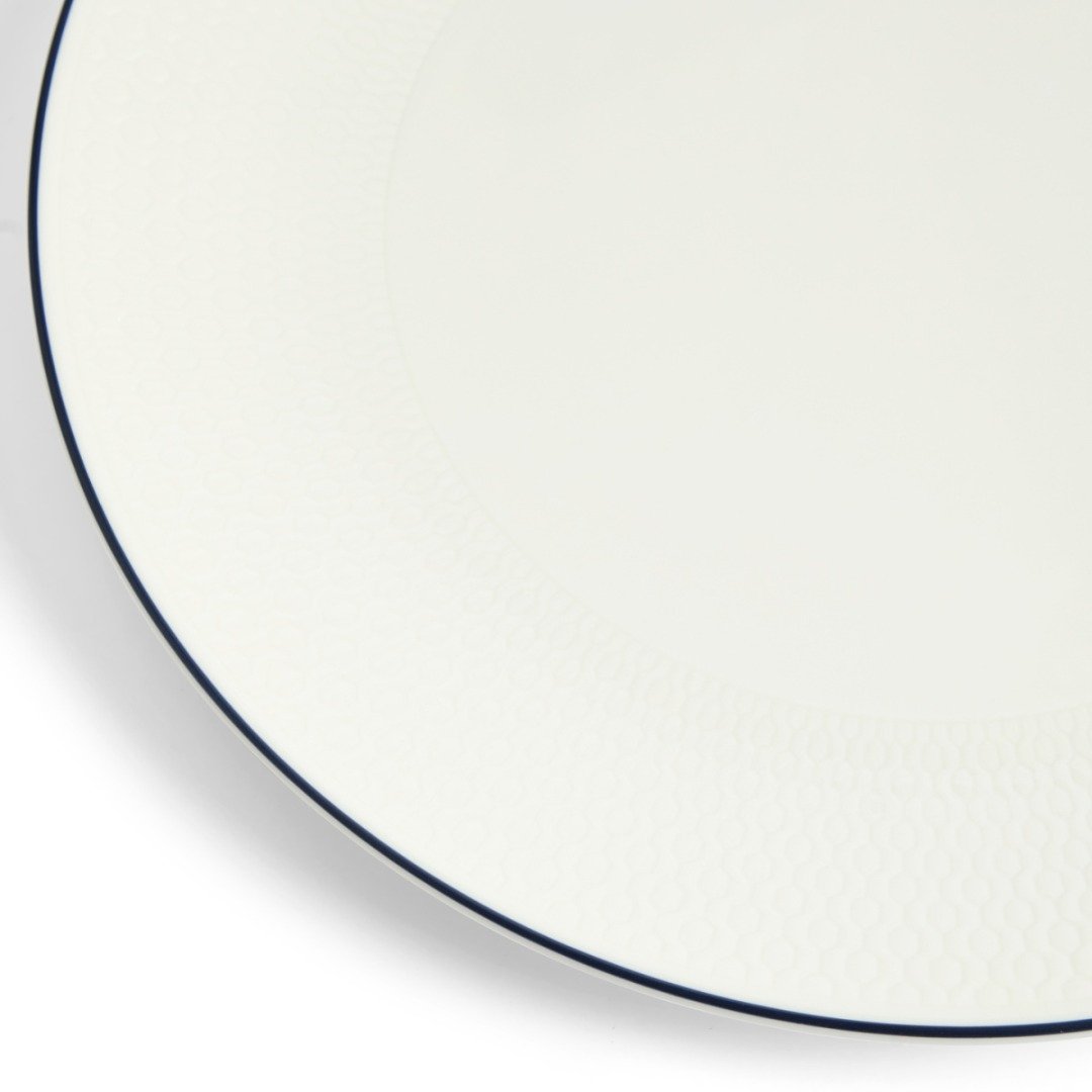 Čistý, nenápadný a decentní je tento talíř z kolekce Gio Blue je dokonalým doplňkem pro klasické i moderní stolování. Díky ručně kreslené akcentní lince v sytě modrém odstínu a řemeslnému zpracování z jemného kostního porcelánu si můžete dopřávat luxus při každém servírování.