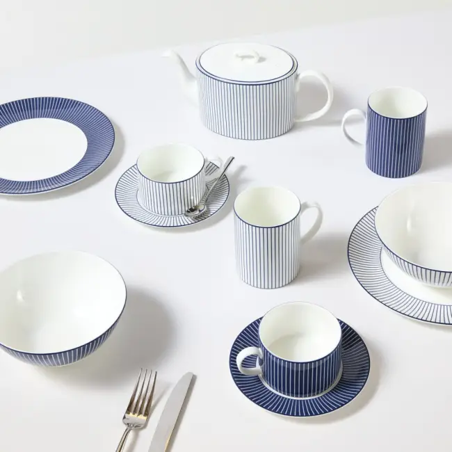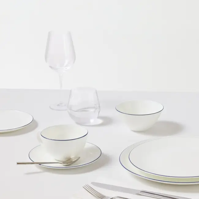 Dokonalý pár, zářící svěží bílou glazurou, který povznese každý další šálek čaje určený k odpočinku. Jemný kostní porcelán je precizně zdoben ručně kreslenou modrou linkou, jež podtrhuje siluety a vytváří čistý, nadčasový vzhled.