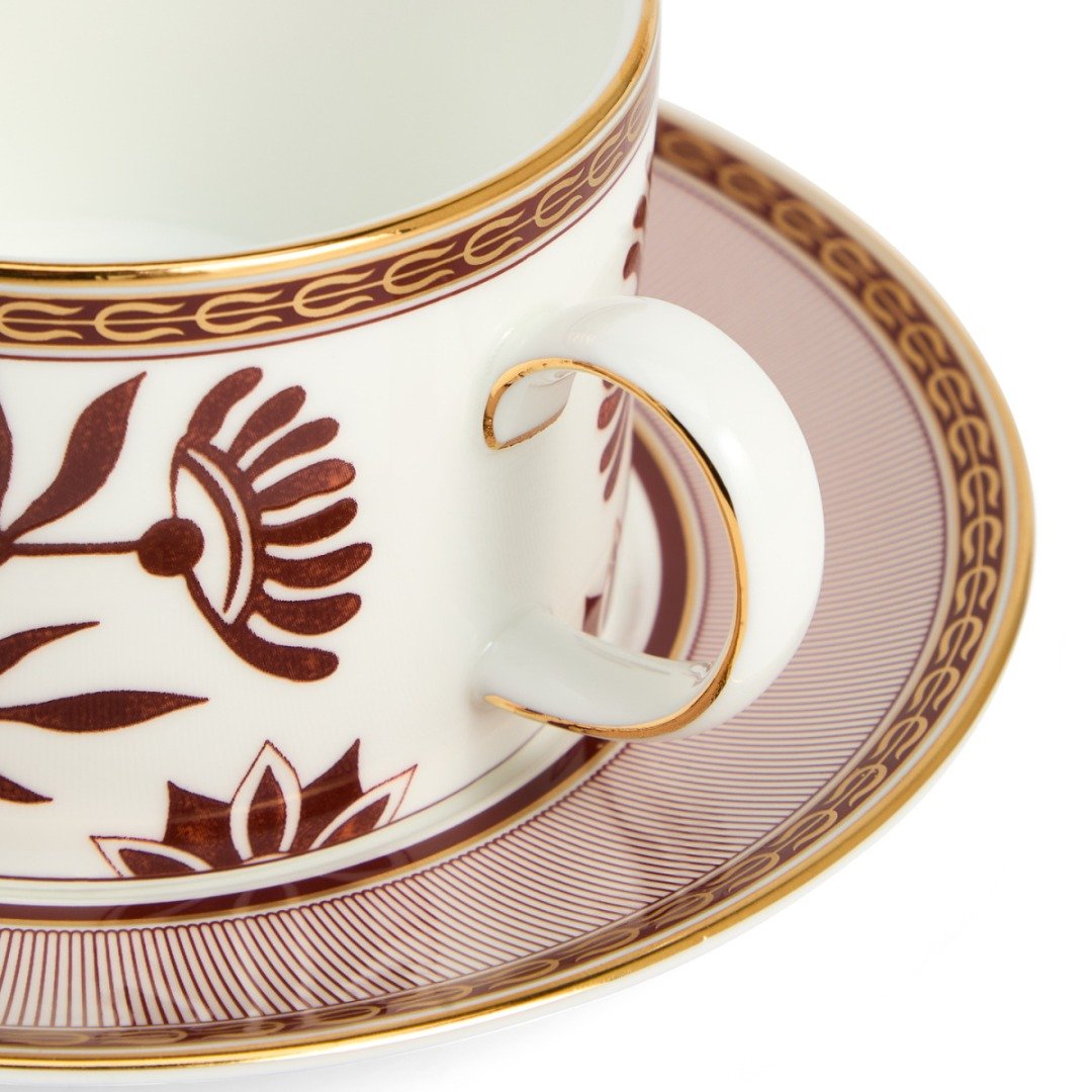 Vychutnejte si čaj ve skutečném stylu s touto nádhernou soupravou. Vyrobena z jemného kostního porcelánu, zaujme elegantním designem s detailními červenými motivy a zdobením z 22karátového zlata, které dodává vašemu čajovému rituálu nádech sofistikovanosti.