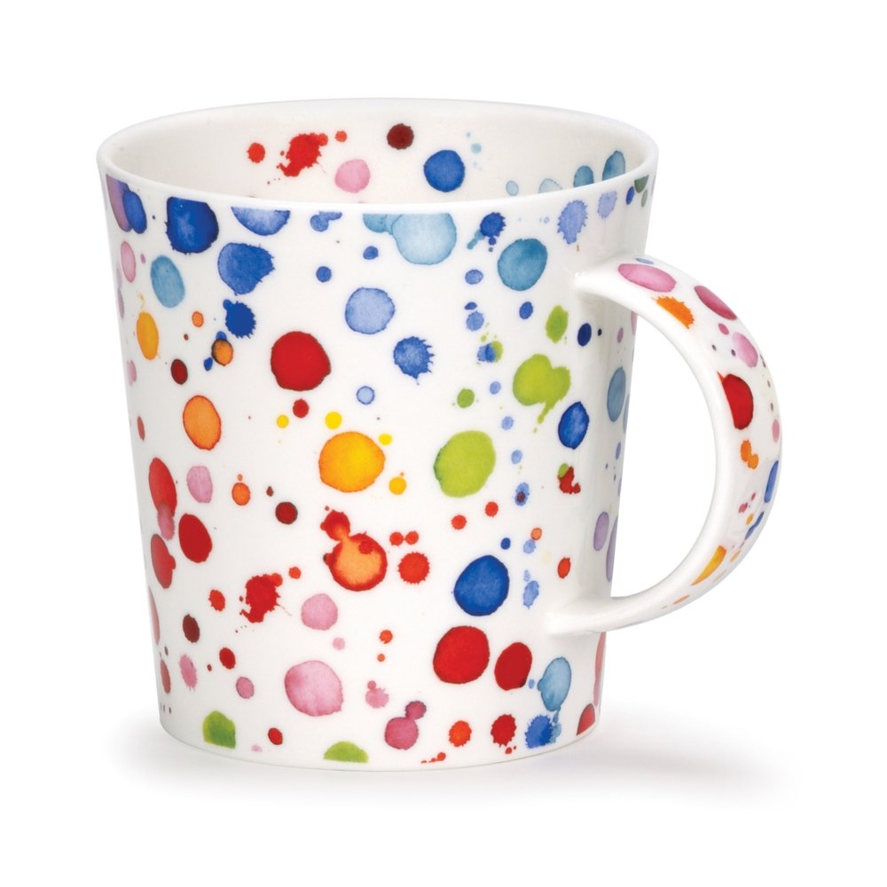 Vzor hrníčku Splat! od Caroline Bessey připomíná kapky zářivých akvarelových barev v duhové paletě, rozptýlené po čistě bílém pozadí. Hrnek je dodáván v elegantní dárkové krabičce značky Dunoon, která stylově doplňuje jeho hravý a barevný vzhled.