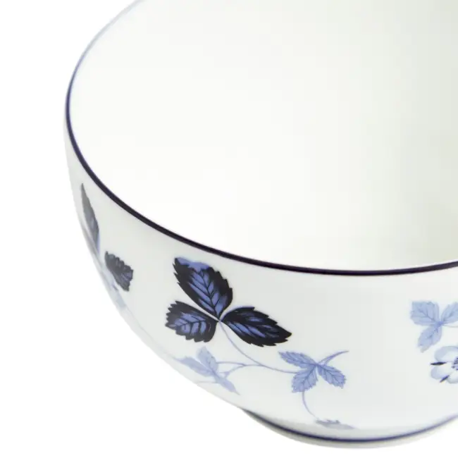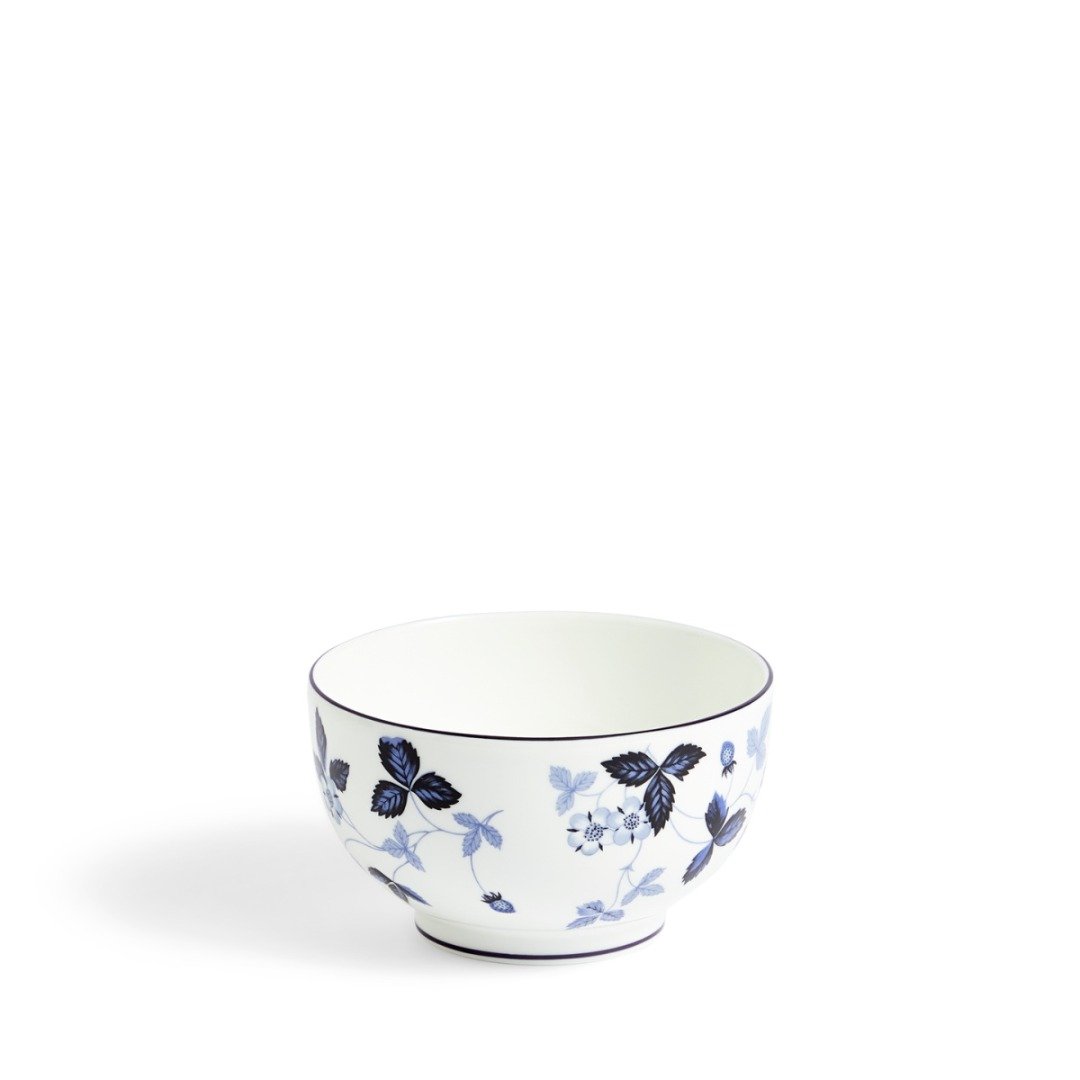 Miska z kolekce Wild Strawberry Inky Blue v odstínu inkoustově modré nabízí moderní interpretaci nadčasového designu. Sytý inkoustově modrý dekor, inspirovaný tradičním vzorem porcelánu, nádherně kontrastuje s hedvábně bílým povrchem z jemného kostního porcelánu. Kreslené výhonky a zralé jahody dodávají celku jemný a elegantní výraz. Tato menší miska je ideální pro servírování oříšků, čerstvého ovoce nebo lehké snídaně – a stane se stylovým doplňkem každého stolu.