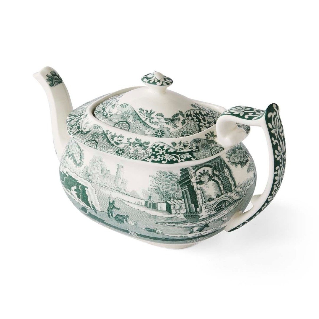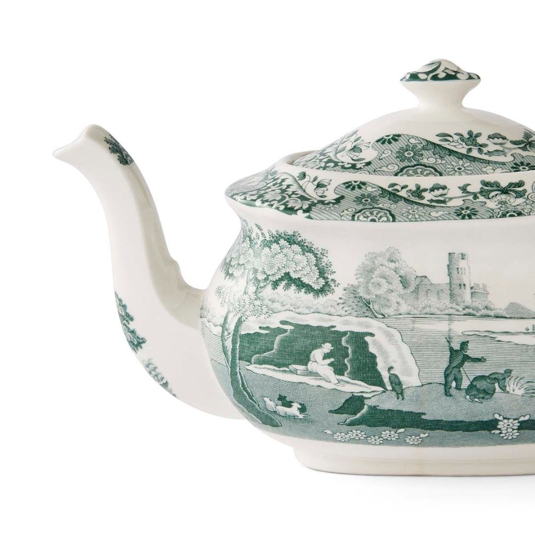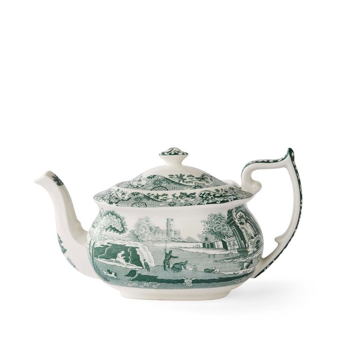 Když čajová konvice vypráví příběh nadčasového stylu… Tato čajová konvice z kolekce Heritage Green Italian v sobě nese eleganci minulosti v moderním pojetí. Je zdobena ikonickým italským vzorem porcelánky Spode v archivním zeleném odstínu z roku 1833, který vyzařuje rovnováhu a decentní noblesu a skvěle ladí s jakýmkoli stylem interiéru. Vyrobená ve Stoke-on-Trent, krásně se kombinuje s jemnými pastelovými, teplými neutrálními i sytými tóny pro moderní a stylově sladěné stolování. Kolekci doplňují hrnky, mléčenka, cukřenka a dvoupatrový etažér — ideální pro dokonalý čaj o páté.