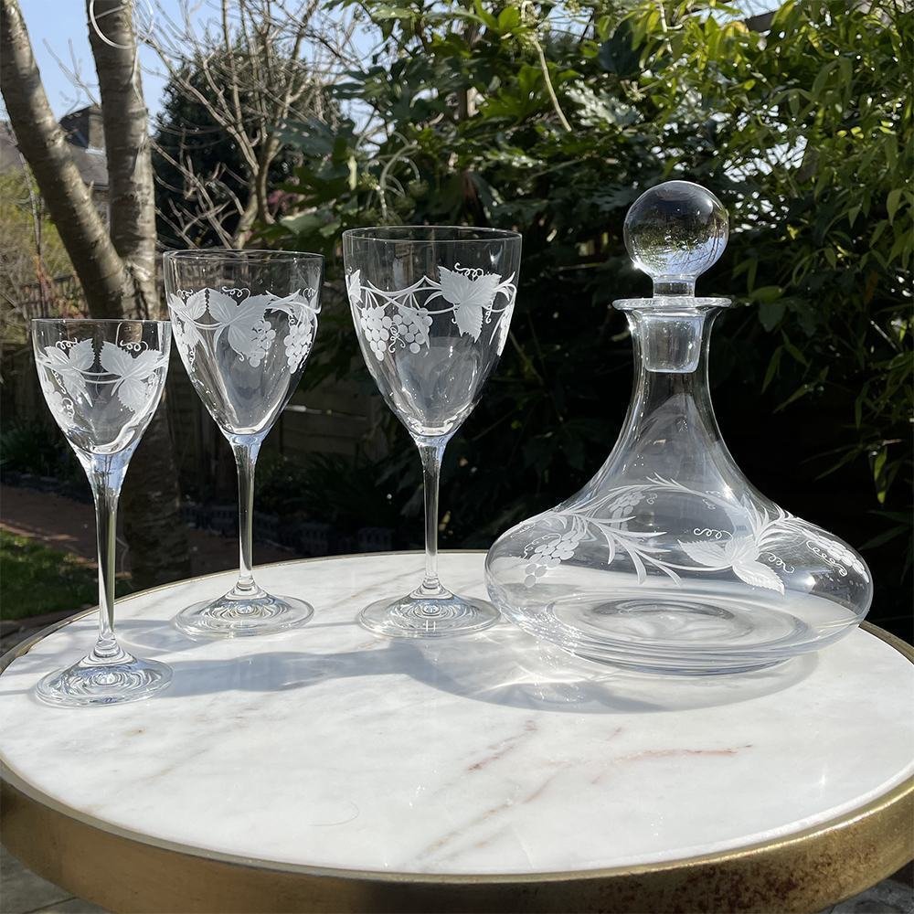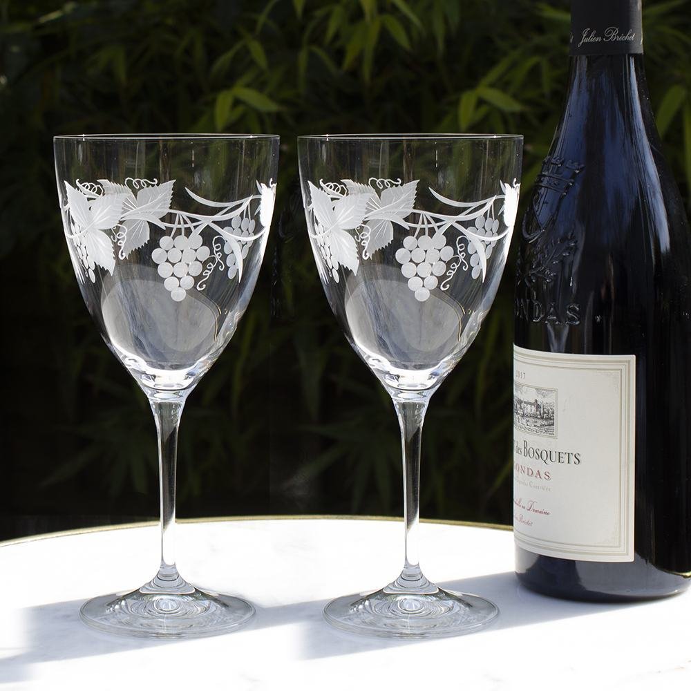Tyto výjimečné sklenice na červené víno z kolekce Grapevine jsou skutečnou ukázkou mistrovství britského sklářství – spojují klasický tvar s nádhernými řemeslnými detaily. Každá sklenice má velkorysou, zaoblenou číši z brilantního křišťálu, která je posazena na elegantní nožce. Dominantním prvkem je bohatě propracovaný intagliový dekor s motivem vinoucí se révy a plných hroznů, jenž vytváří působivou plastickou strukturu a dodává čirému křišťálu jedinečnou a sofistikovanou eleganci.
