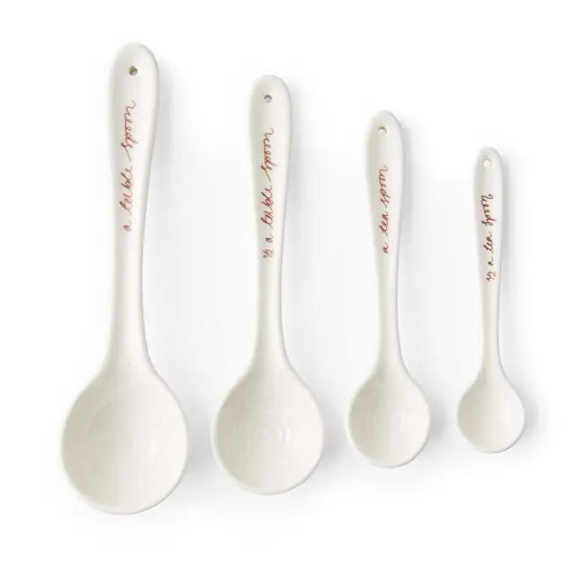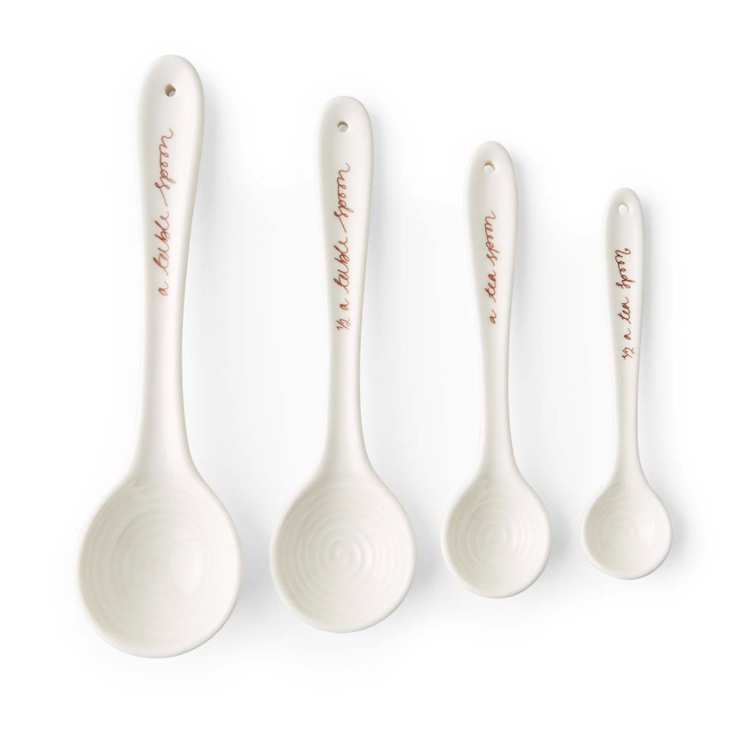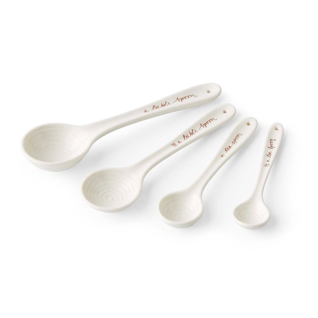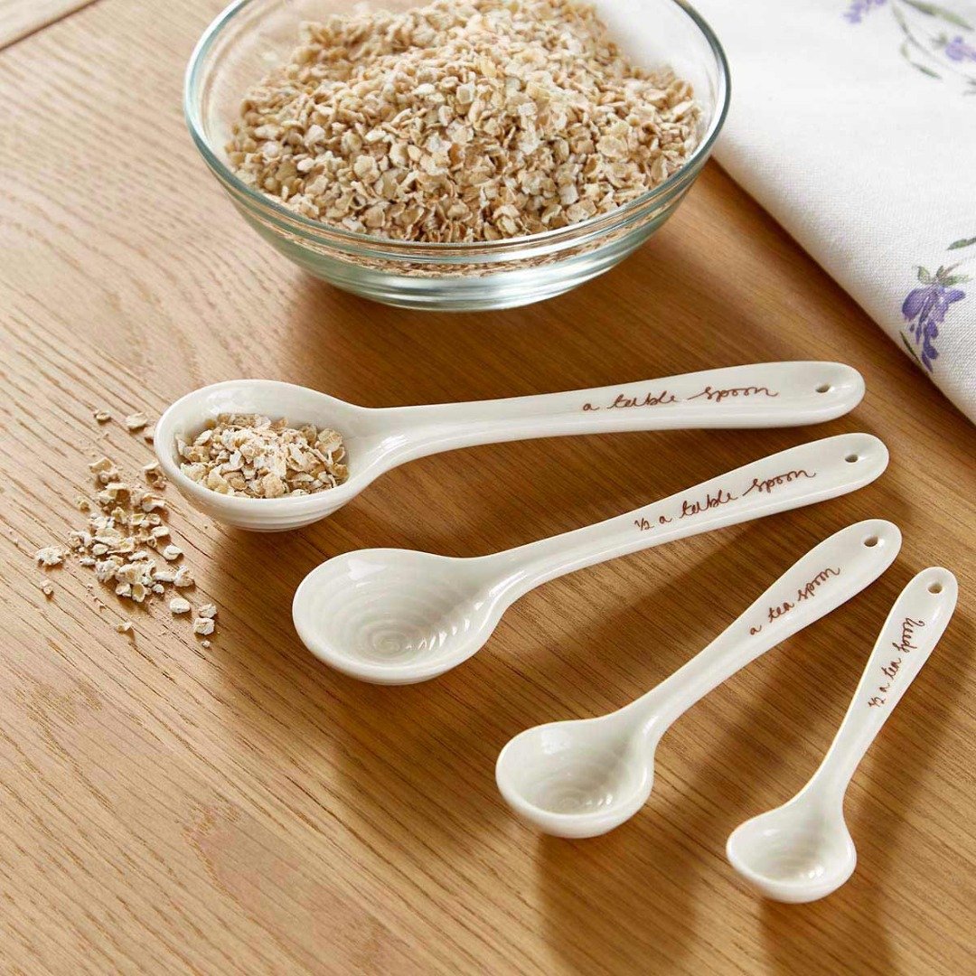 Přesné a stylově navržené, tato sada čtyř keramických odměrek z kolekce Sophie Conran pro Portmeirion je nepostradatelným pomocníkem při pečení. Rozsah od jedné polévkové lžíce po půl čajové lžičky pokrývá všechny základní potřeby a jednotlivé objemy jsou prakticky uvedeny přímo na rukojetích.