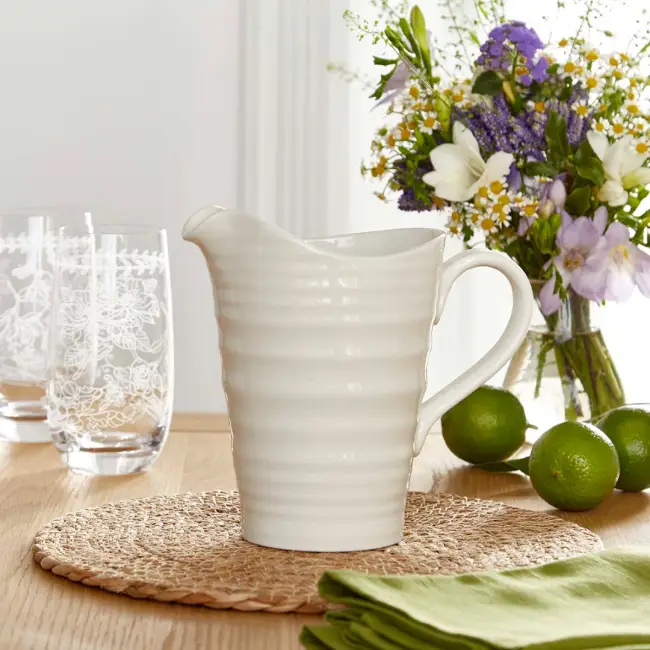 Tento džbán z dílny světoznámé návrhářky Sophie Conran a značky Portmeirion spojuje krásu s praktičností – je vhodný pro každodenní použití i slavnostní příležitosti. Skvěle se kombinuje s kolekcemi Sophie Conran White nebo Lavandula a vytváří harmonický a stylový celek na vašem stole.