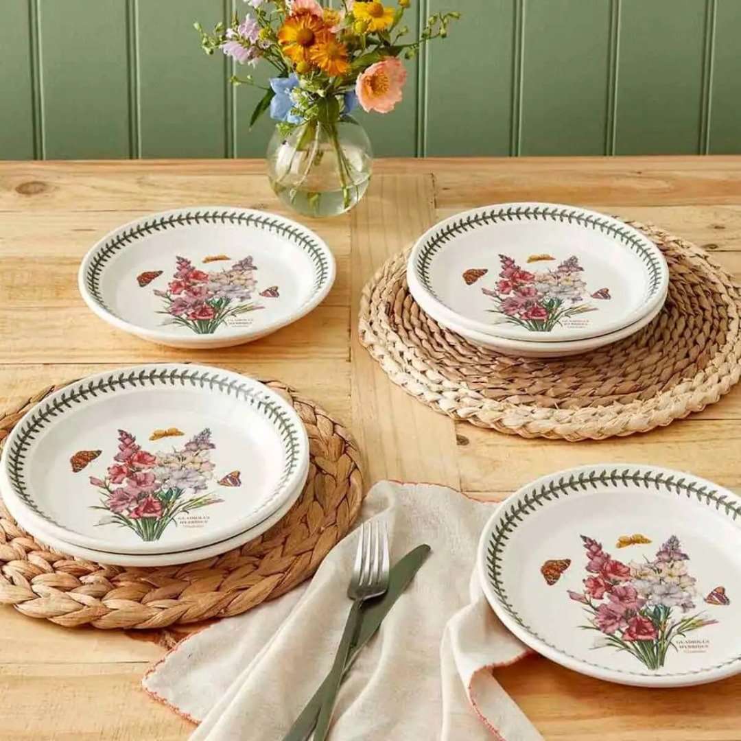 Doplňte své stolování dezertním talířem Botanic Garden Gladiolus od značky Portmeirion. Talíř je vyroben z kvalitní kameniny v Anglii a zdobí jej detailní motiv mečíku doplněný ikonickým vavřínovým lemem, který dodá vašemu prostřenému stolu barevný a elegantní akcent.