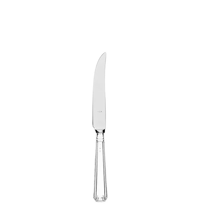 Elegantní stříbrná rukojeť na ocelový steakový nůž. Nádherný dárek pro milovníky stolování a krásných věcí. Ke každému kusu si můžete objednat dárkovou kazetu zde.