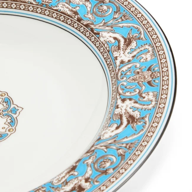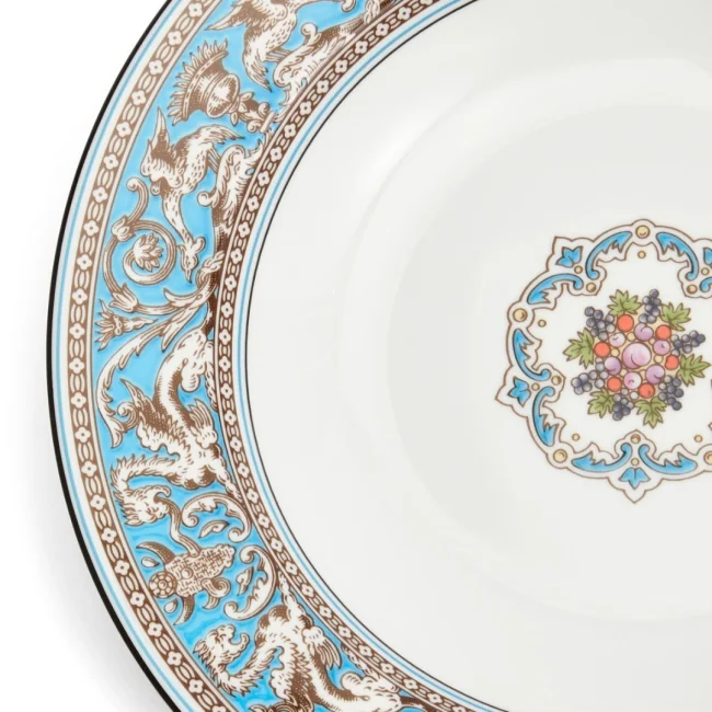 Existuje několik vzorů, které odpovídají bohatství florentské tyrkysové; poprvé představena v roce 1931 na těle jemného kostního porcelánu a vyznačuje se ozdobným okrajem, který je složitě propracovaný. Skutečně slavná kolekce s dědictvím sahajícím sedm desetiletí. Talíř je vhodný nejen na polévku, ale i na malé těstoviny a rizoto. Tento kus bude ozdobou každého stolu a hostiny.