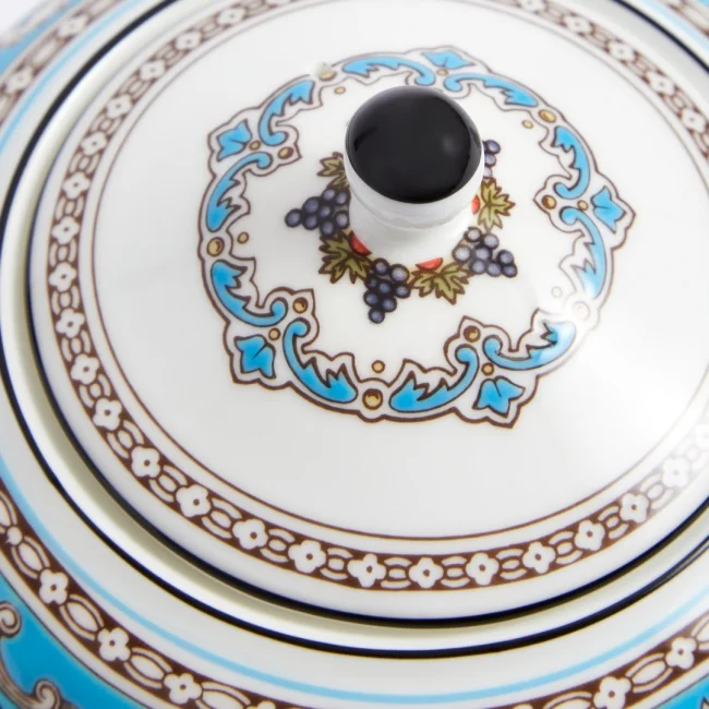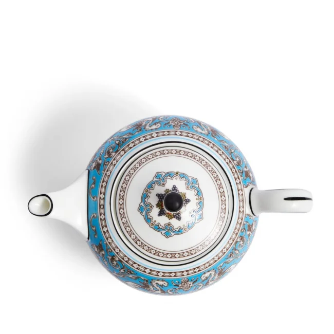 Existuje několik vzorů, které odpovídají bohatství florentské tyrkysové; poprvé představena v roce 1931 na těle jemného kostního porcelánu a vyznačuje se ozdobným okrajem, který je složitě propracovaný. Skutečně slavná kolekce s dědictvím sahajícím sedm desetiletí. Elegantní dárek v podobě konvice na čaj bude radostí každého milovníka dobrého čaje a anglického kostního porcelánu.