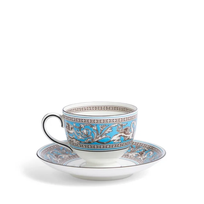 Existuje několik vzorů, které odpovídají bohatství florentské tyrkysové; poprvé představena v roce 1931 na těle jemného kostního porcelánu a vyznačuje se ozdobným okrajem, který je složitě propracovaný. Skutečně slavná kolekce s dědictvím sahajícím sedm desetiletí. Elegantní tvar tohoto šálku "Peony" bude krásný dárek a bude chloubou každého milovníka dobrého čaje a anglického kostního porcelánu.