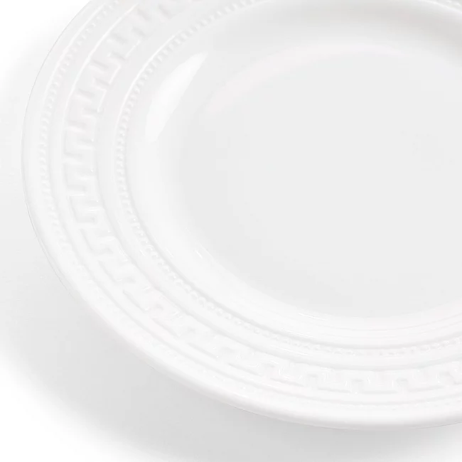 Současná se setkává s klasikou se vzorem hlubotisku, který kombinuje reliéfní textury tak populární během Georgianské éry s čistou bílou glazurou, která je nezaměnitelně moderní. Krásný bílý kostní porcelán s jemným vyraženým vzorem připomínající starověký Řím a Řecko dodá každému stolu nadčasově klasický nádech s moderním geometrickým okrajem.