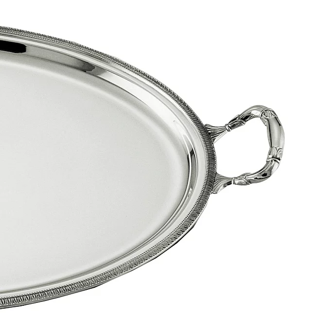 Elegantní oválný stříbrný servírovací tác bude nádherným dárkem pro milovníky stolování a krásných věcí.