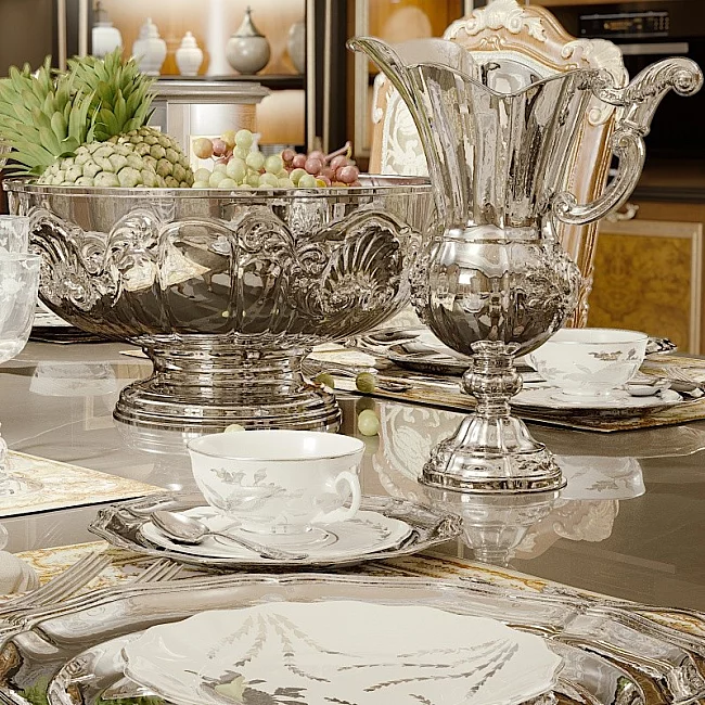 Řadu postříbřeného nádobí Barocco představuje vzor s propletenými stužkami, akantové listy, věnce a mušle, v reliéfu vytvořených technikou „repoussé“. V této kolekci se skvěle vyjadřují umělecké tvary a vzory stříbrotepecké tradici konce sedmnáctého a osmnácté století.