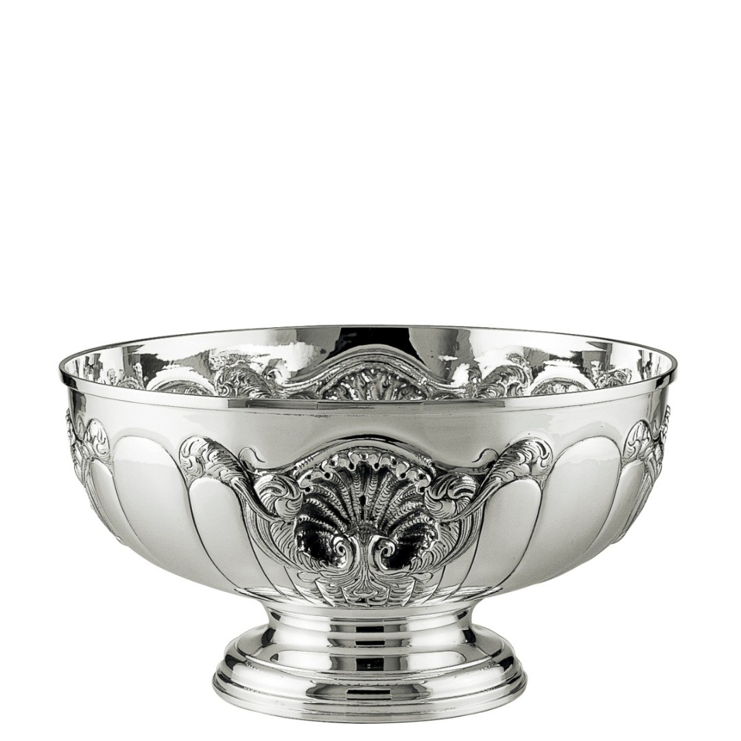 Elegantní stříbrná mísa na noze 30 cm. Dokonalá práce italských stříbrotepců. Nádherný dárek pro milovníky stolování, stříbra a krásných věcí.