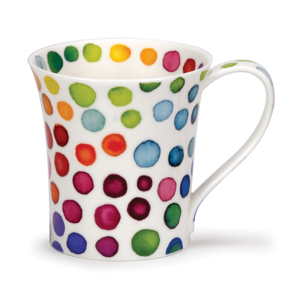 Jeden z nejpopulárnějších a nejznámějších vzorů porcelánky Dunoon, různobarevných teček "Hot Spots" pokrývajících tento hrnek v pohádkovém vzoru anglické designérky Caroline Bessey v jejím stylu akvarelu.