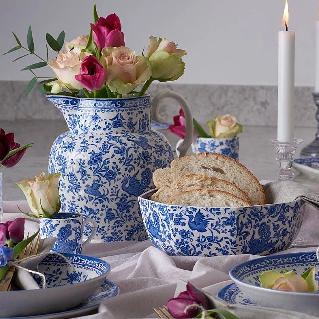Vzor Regal Peacock vychází ze staré orientání bajky o pávovi, jeřábovi a lejskovi, jak společně volili krále. Motiv byl poprvé představen v roce 1913. Tento znovu oživený vzor je krásným a praktickým příkladem klasického ručního přenesení vyrytého vzoru z měděných desek na střep pomocí hedvábného papíru.