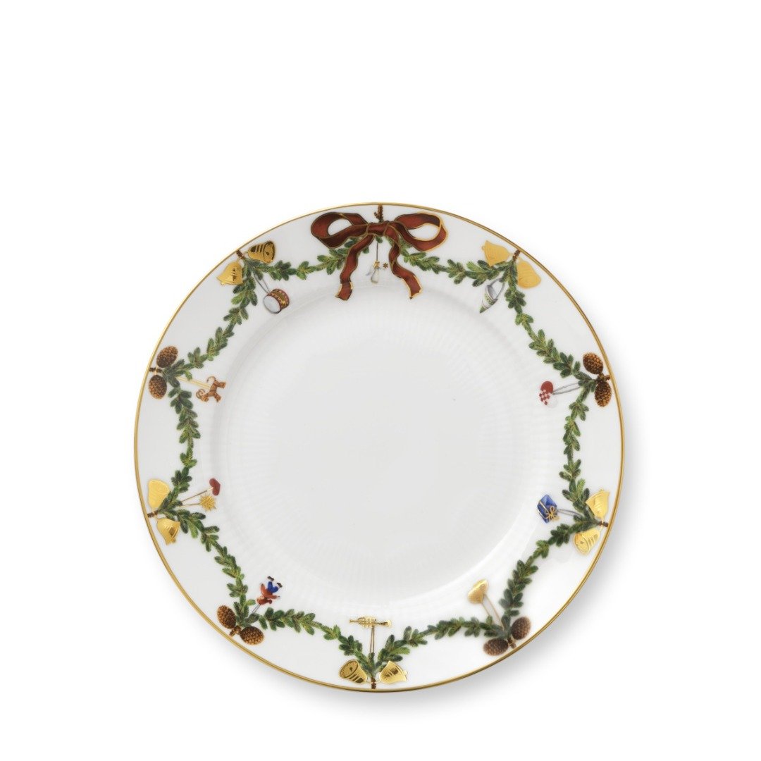 Vánoční jídelní servis Star Fluted Christmas je vyroben z nejjemnějšího kostního porcelánu, který je mnohem průsvitnější než bežný porcelán. Díky teplejší bílé barvě působí s červenými a zelenými dekoracemi stylově a nostalgicky. Tvar vánočního porcelánu a nádobí Star Fluted Christmas je pro Royal Copenhagen klasikou. Kolekce byla vyrobena podle vzoru z roku 1895.