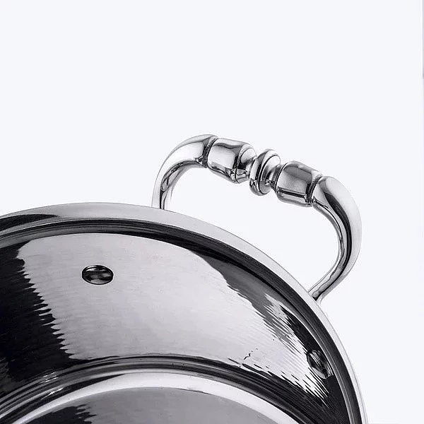 Tato ručně vyrobená pánev s poklicí 30 cm z nerezavějící oceli byla vyrobena nedaleko italského jezera Lago Maggiore v regionu Piemont. Je dokonalou ukázkou mistrovské práce. Skvěle se hodí pro přípravu směsí masa a zeleniny. Bude se vyjímat na Vašem prostřeném stole stejně jako servírovací porcelán. Nádherný dárek pro milovníky vaření.